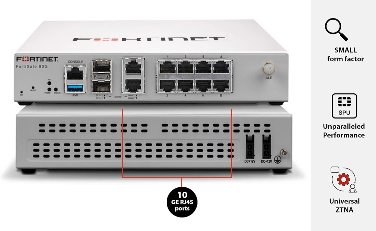 FortiGate 90G modeli, küçük ve orta ölçekli işletmeler için tasarlanmış gelişmiş bir Fortinet güvenlik duvarıdır. Ağınızı tehditlere karşı korur, yüksek performanslı UTM (Unified Threat Management) özellikleri sunar.