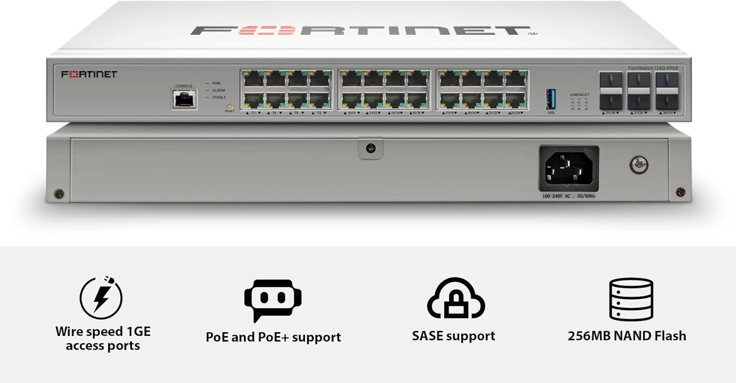 Fortinet FortiSwitch FS-124G-FPOE Yönetilebilir Gigabit PoE+ Ethernet Switch 24 Port + 4 SFP